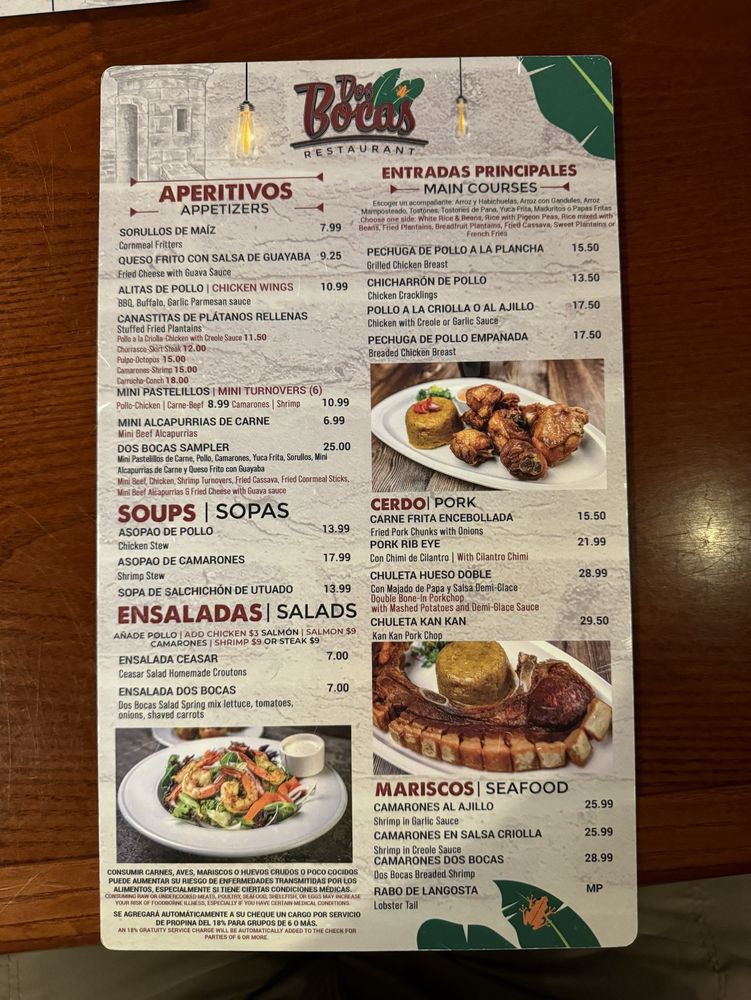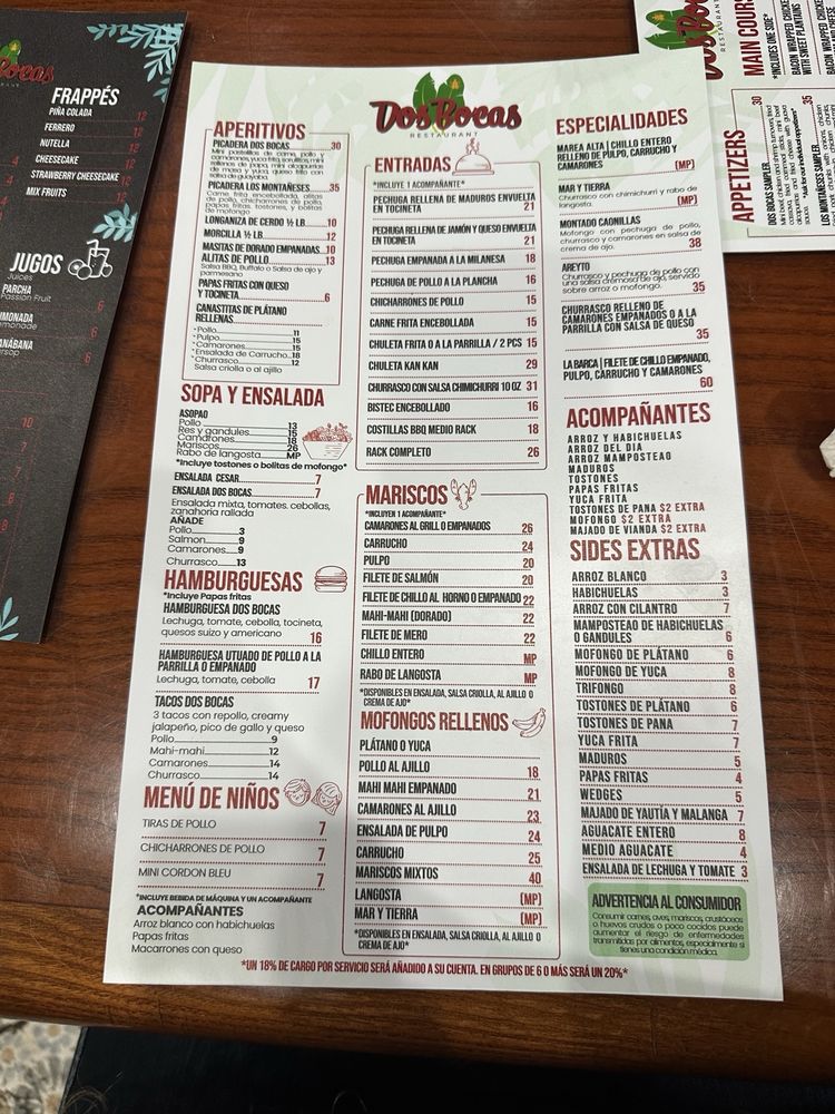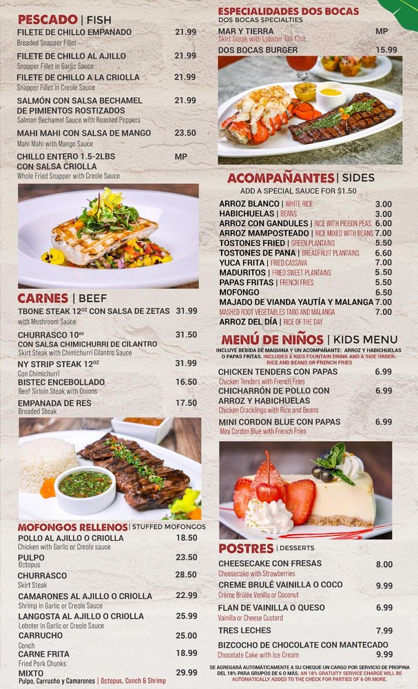 Dos Bocas Restaurant Menu